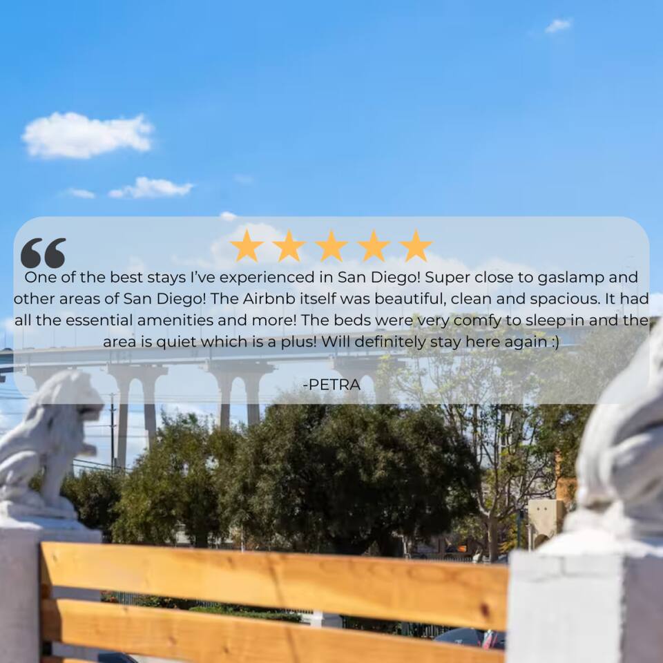 One of the best stays I’ve experienced in San Diego! Super close to gaslamp and other areas of San Diego! The Airbnb itself was beautiful, clean and spacious. It had all the essential amenities and more! The beds were very comfy to sleep in and the area is quiet which is a plus! Will definitely stay here again :)