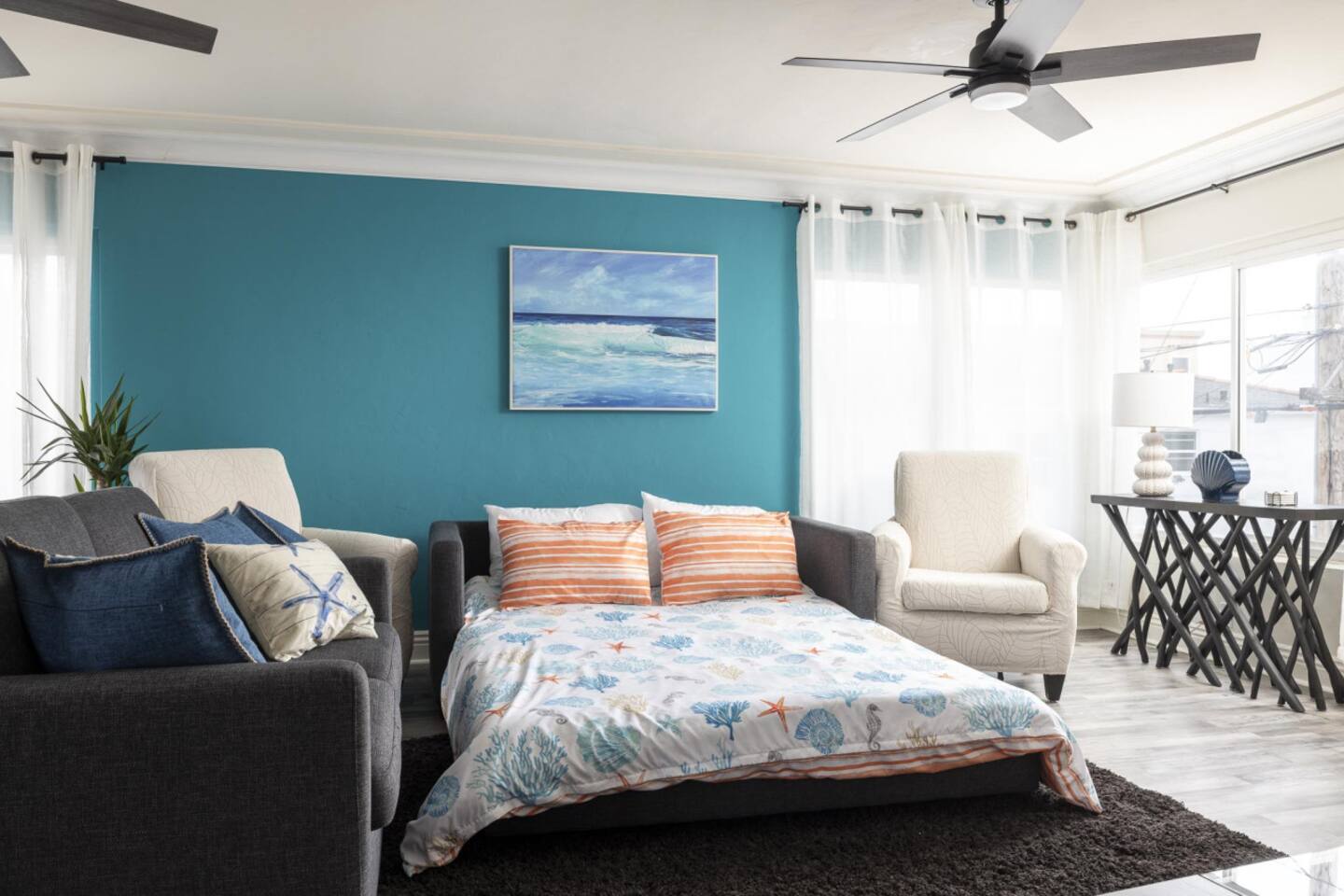 Beautiful property with great decor! A huge living room, dining area and great kitchen space! Everything was updated, clean and comfortable. Hearing the ocean at night was amazing, all the windows and breeze made it so enjoyable. Would definitely stay again!