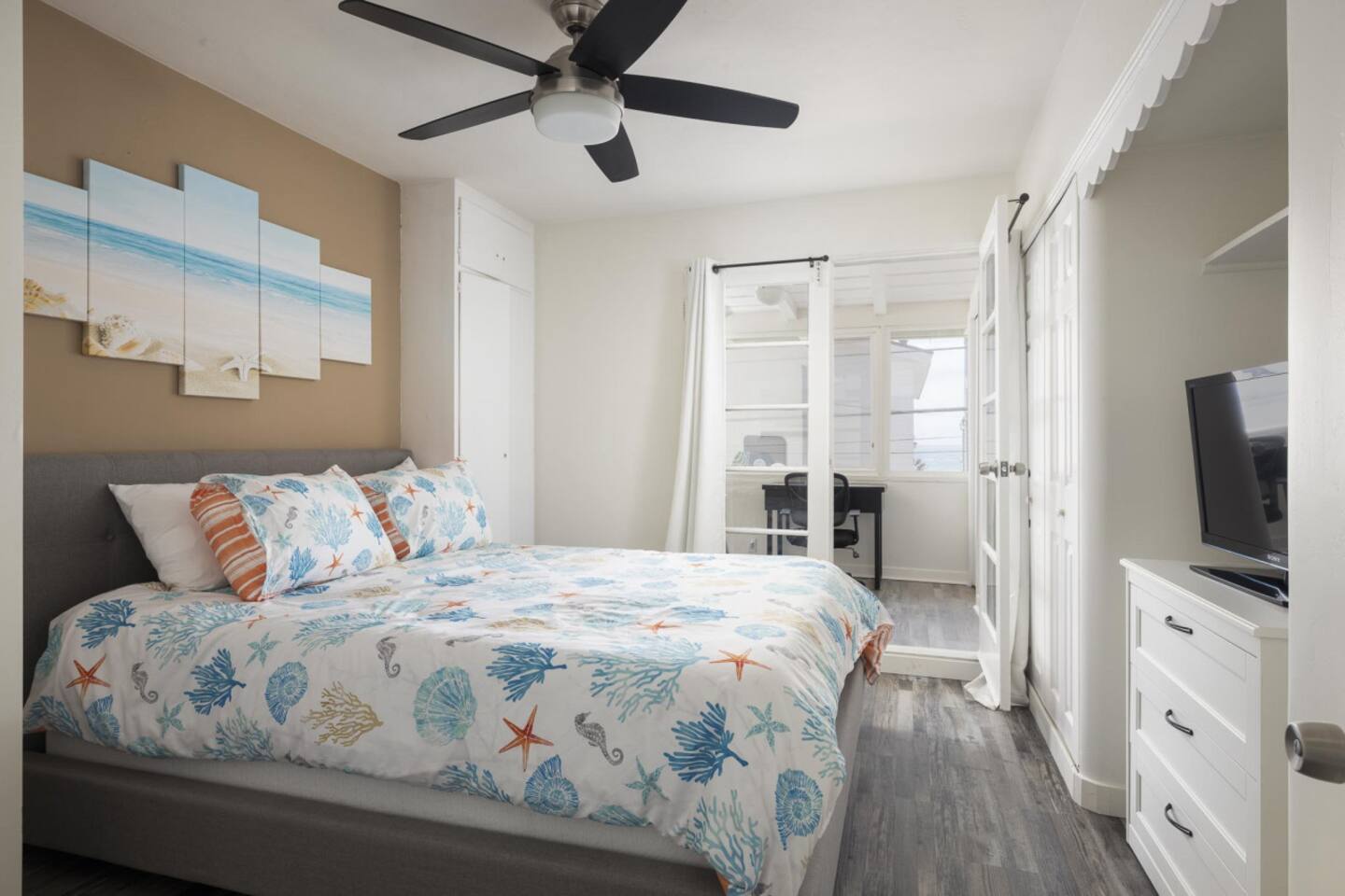 Like many homes by the coast, we do not have air conditioning. We do have ceiling fans in the rooms for your comfort. Feel free to open the windows, let the ocean air flow, and enjoy the unique charm of Mission Beach.