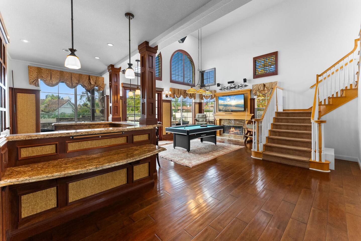Step inside and you’ll immediately feel at home. The downstairs game parlor sets the tone for fun with a convertible pool-and-ping-pong table and a flat-screen TV for game nights. From there, step outside to your private backyard oasis—complete with a sparkling pool, hot tub, outdoor dining area, built-in BBQ, and a separate dog-run and play zone for your furry companions. At night, the pool lights up for a magical swim under the stars. The fenced pool area and alarm system add peace of mind for families with little ones.