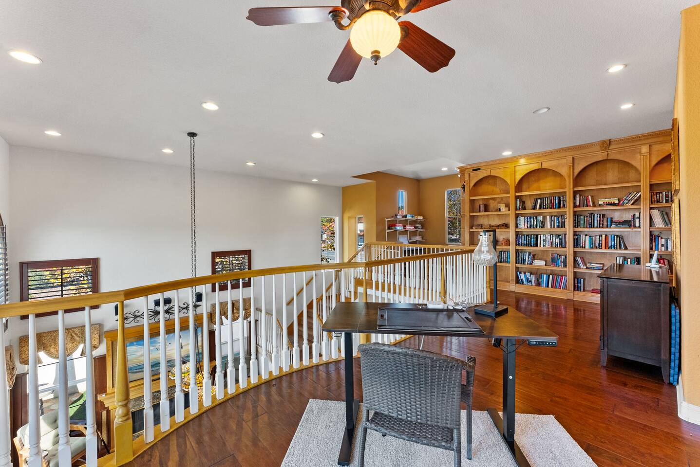 Head upstairs to the library loft, where books, board games, and even a keyboard piano await. It’s the perfect spot to unwind, learn something new, or get cozy with a book. A dedicated workspace nearby makes remote work a breeze—because someone’s got to fund the fun, right?
