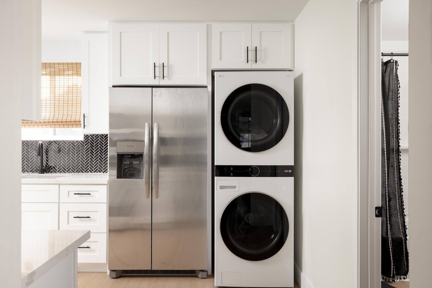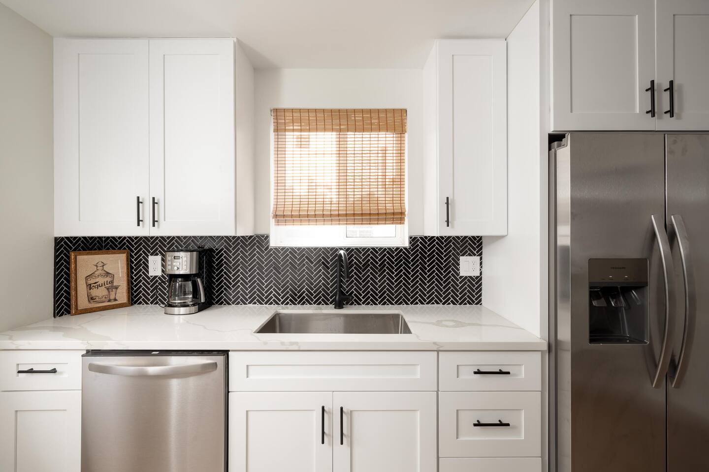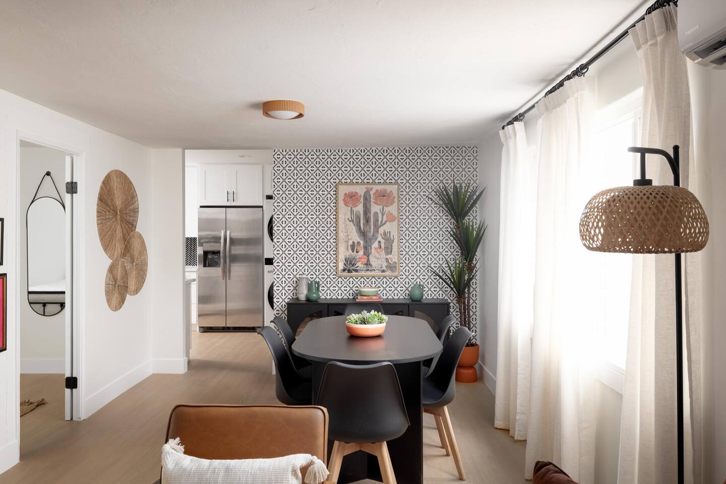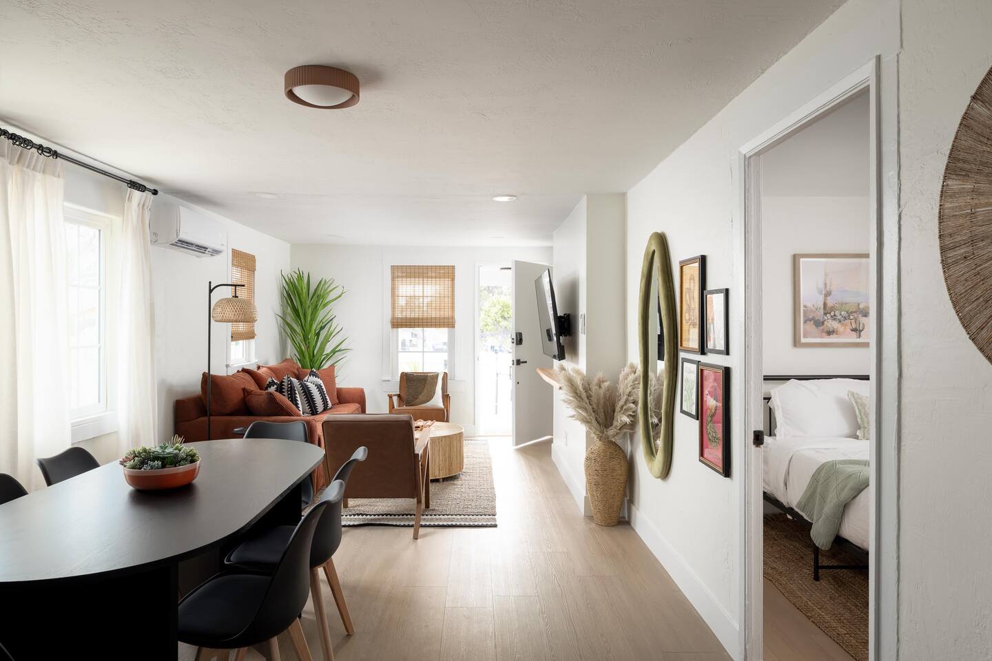Inside, you'll find a bright and airy 2-bedroom, 1-bath layout with air conditioning, stylish finishes, and everything you need for a comfortable stay—from a fully stocked kitchen to cozy linens and curated decor touches throughout.