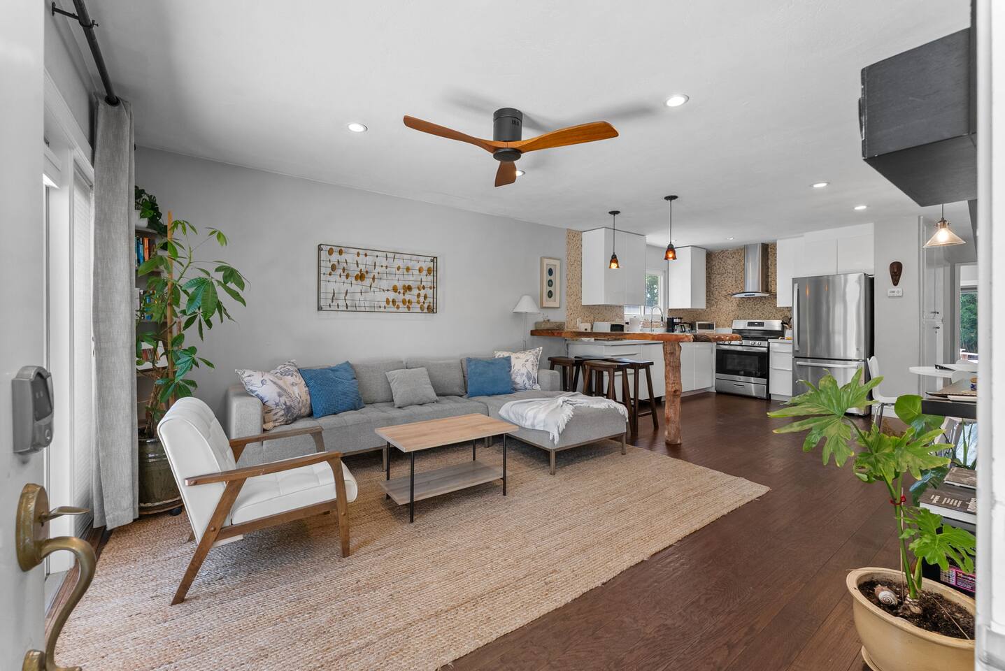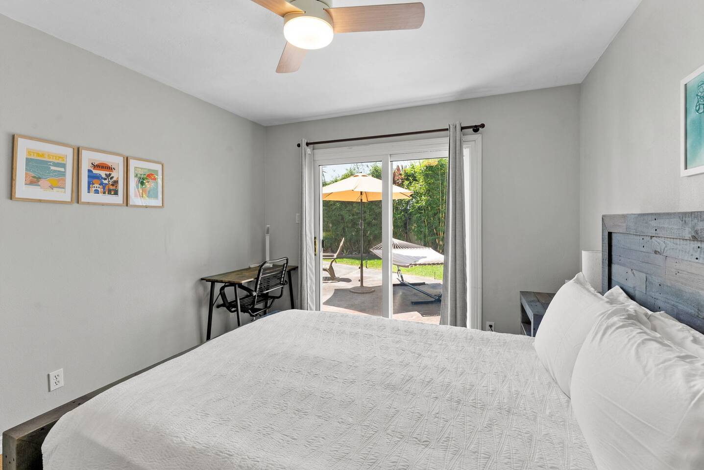 Spend your afternoons lounging in the sun, rinsing off in the outdoor shower after a surf session, or grilling dinner on the BBQ before gathering in the backyard. With two patios, fruit trees, and space to unwind, the outdoor areas are just as inviting as the inside. Open the doors and let the ocean breeze flow through—guests often mention how cool and comfortable the home stays, even on warm days.