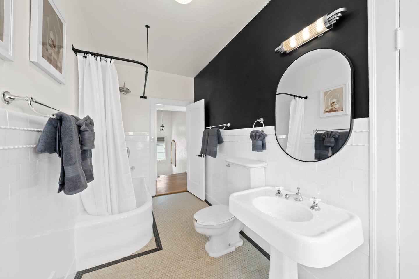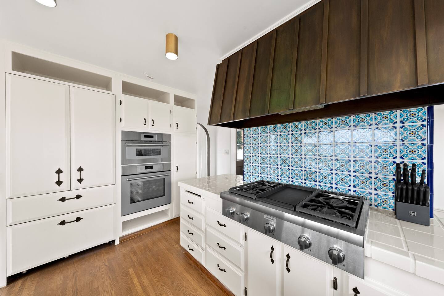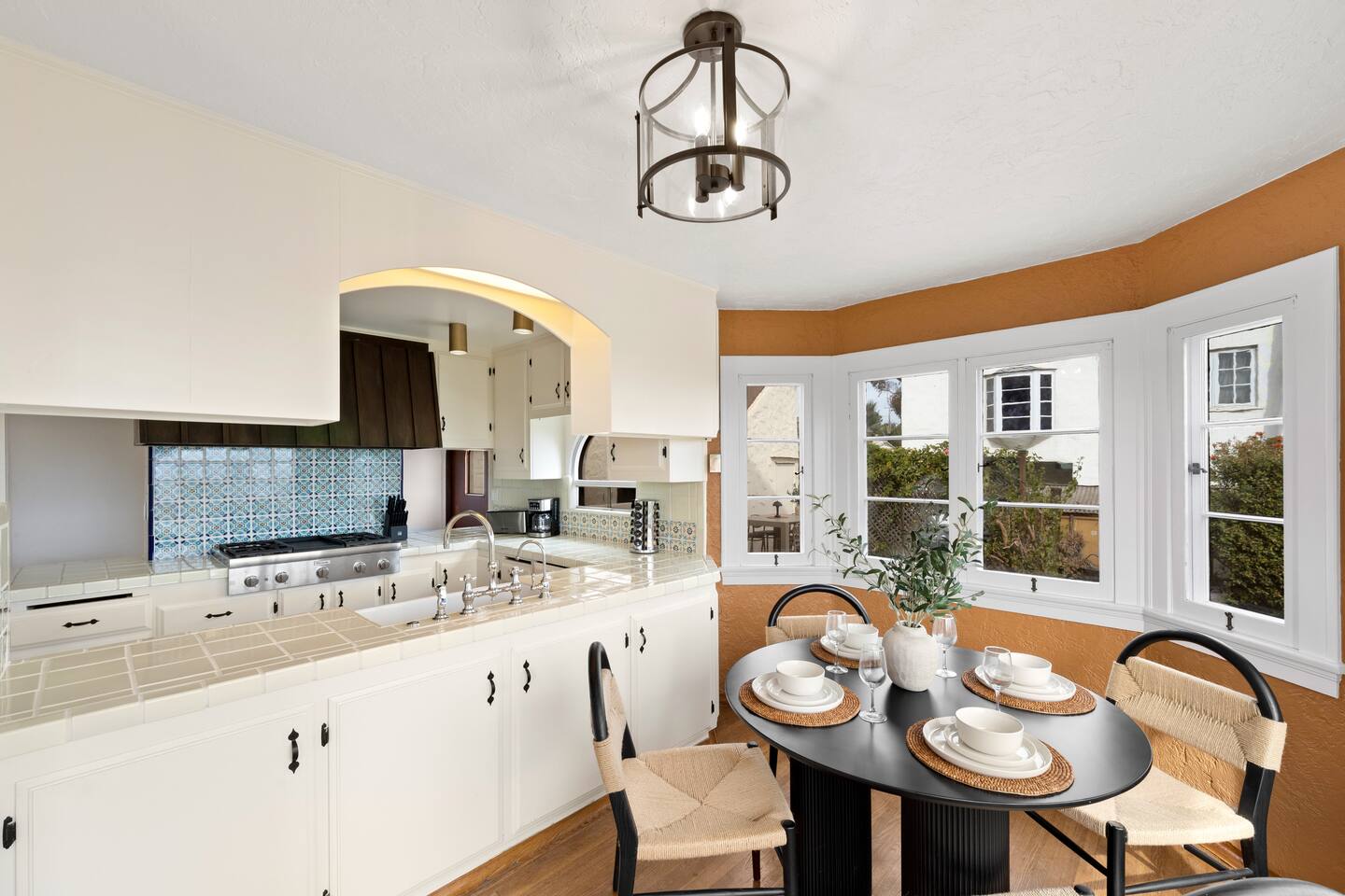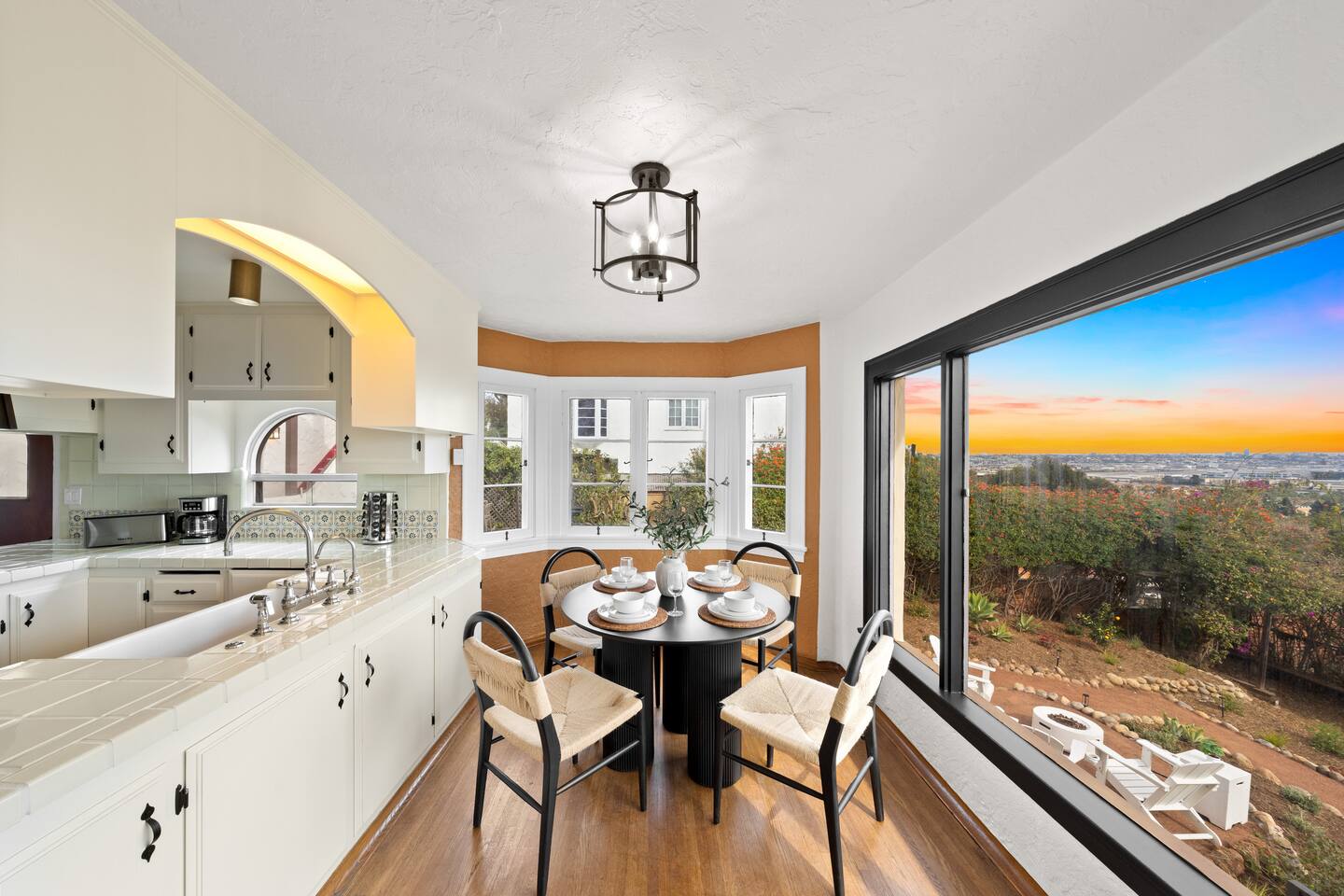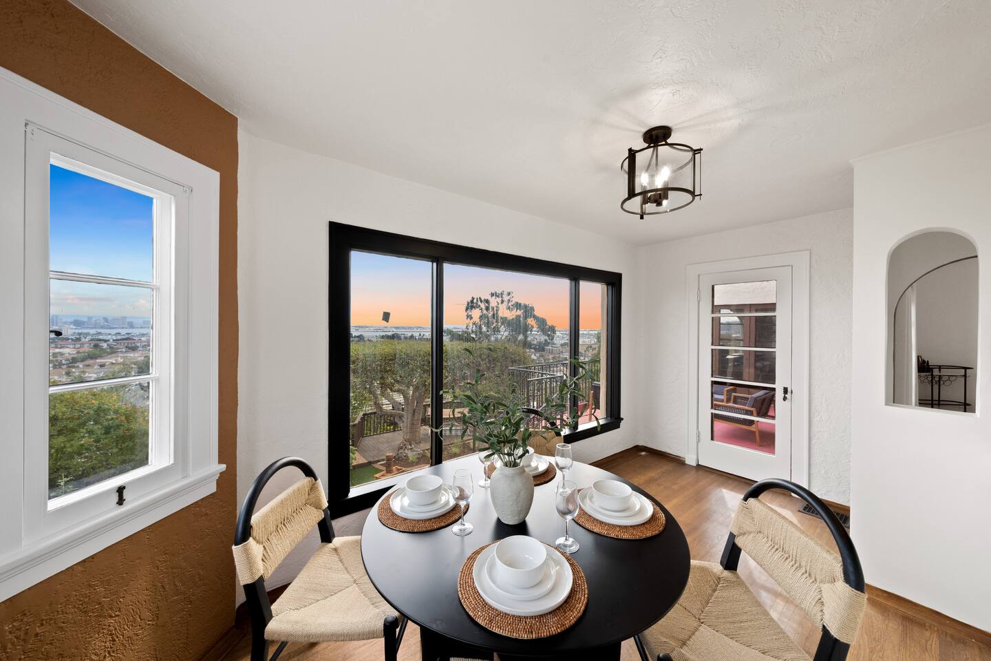 Step inside to the warmth of true California craftsmanship — arched doorways, original Spanish tiles, wrought-iron railings, and rich hardwood floors. The spacious living room sets the tone, inviting you to gather as a group and take in panoramic views that stretch across the city and bay.