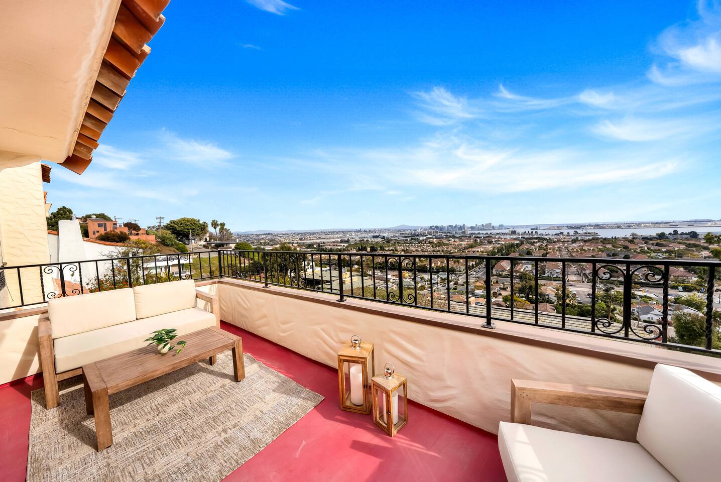 Welcome to your luxury Spanish Revival retreat in the heart of Point Loma — where timeless architecture meets modern comfort and sweeping 180° views of the San Diego Bay, downtown skyline, Coronado Bridge, and airport. Lovingly restored with designer touches throughout, this luxe hillside home sits in a quiet, upscale family neighborhood, offering a serene escape that’s still minutes from all of San Diego’s best attractions.