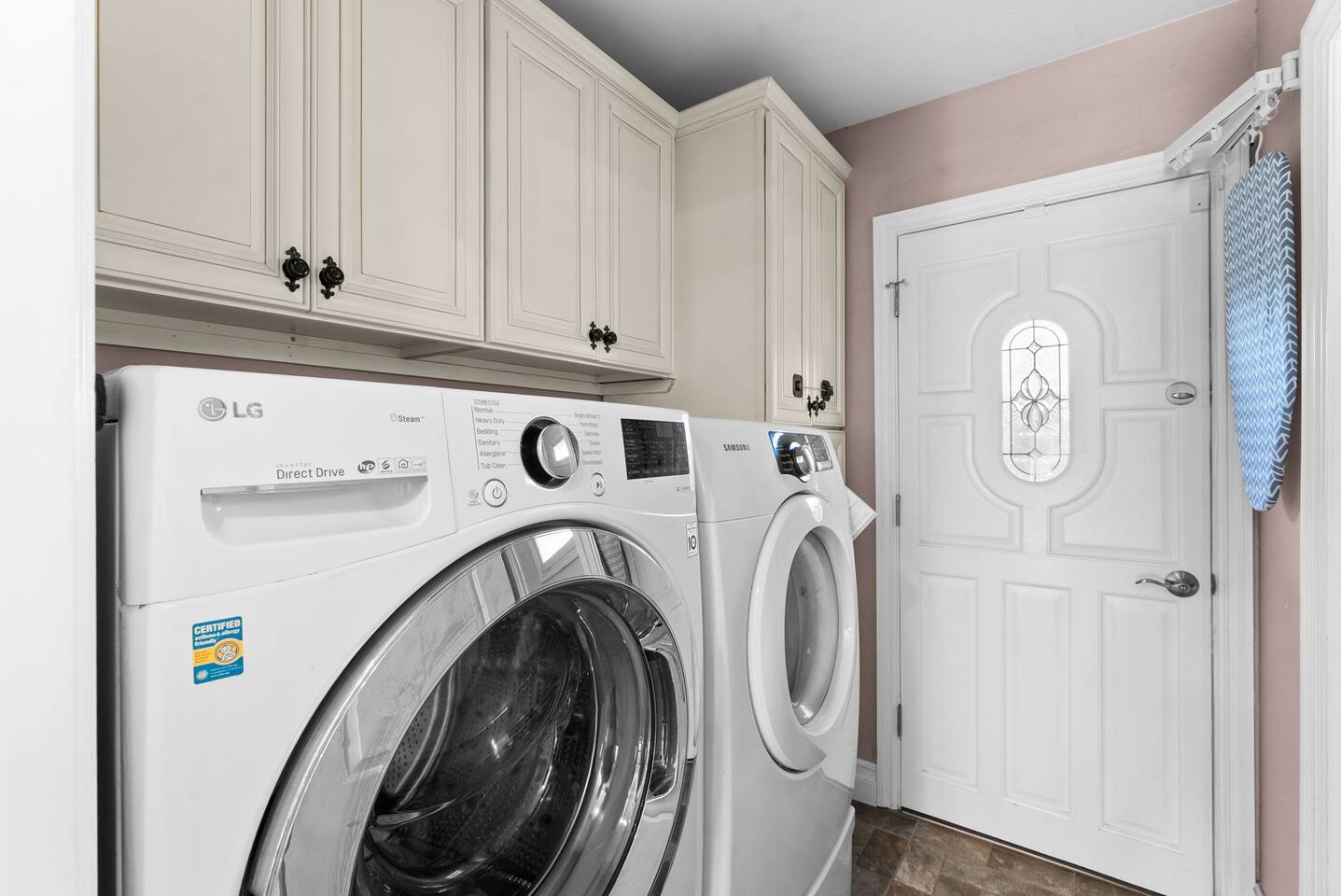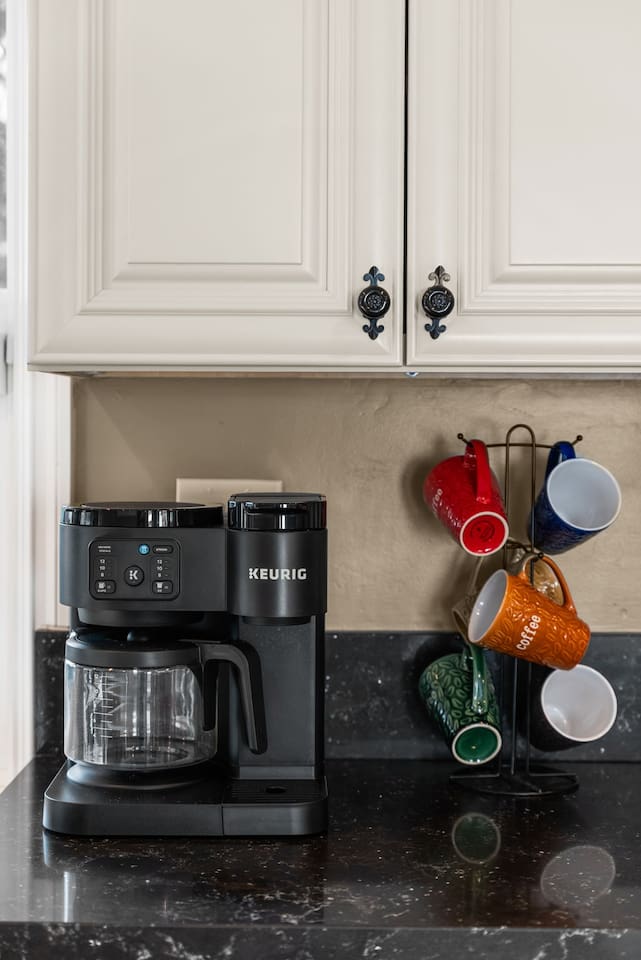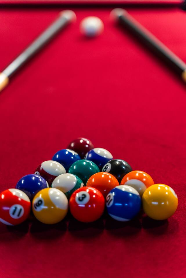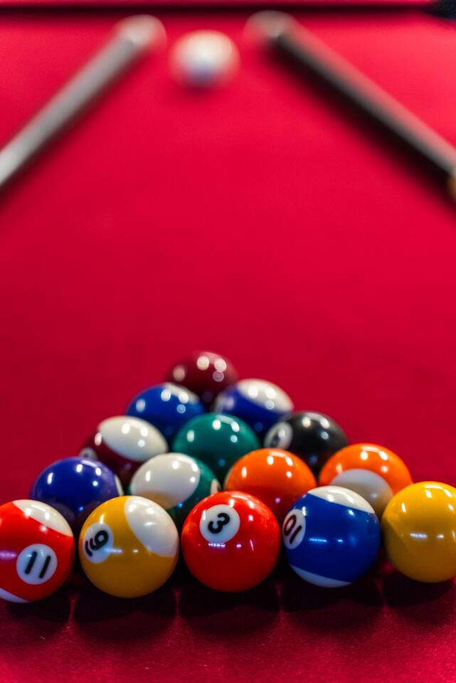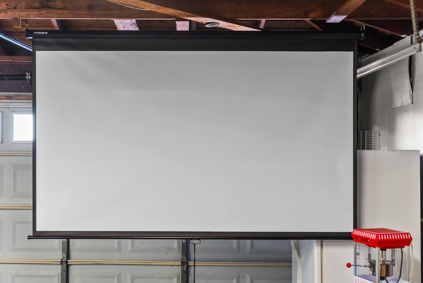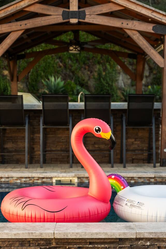 Inside, the garage has been transformed into a full game room that’s a hit with both kids and adults. Settle in for movie nights with a projector and cozy seating (complete with a popcorn machine), test your skills with axe throwing, or rotate between mini pool, air hockey, and ping pong on the convertible game table. Board games round out the fun for rainy days or late-night laughs.