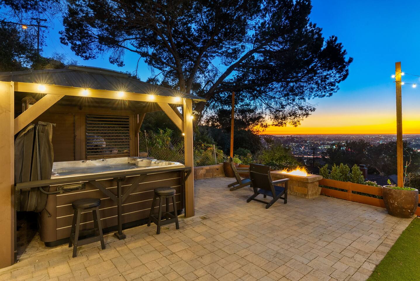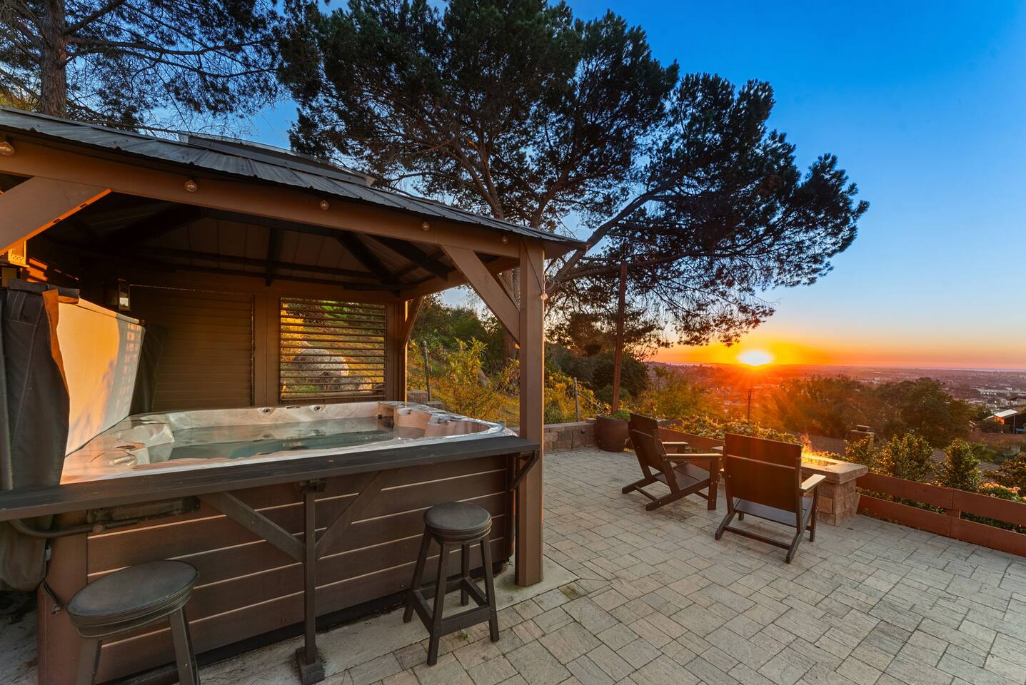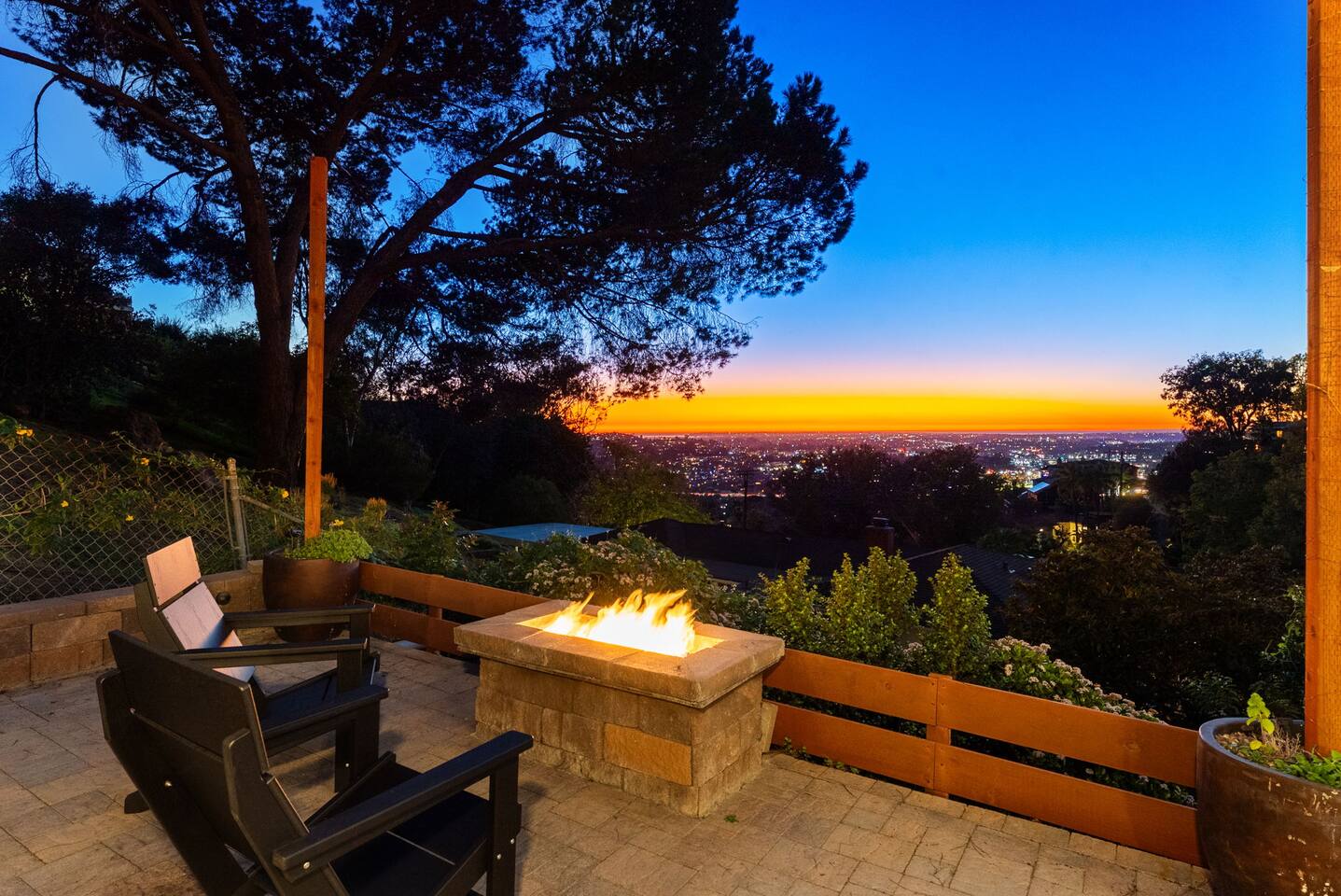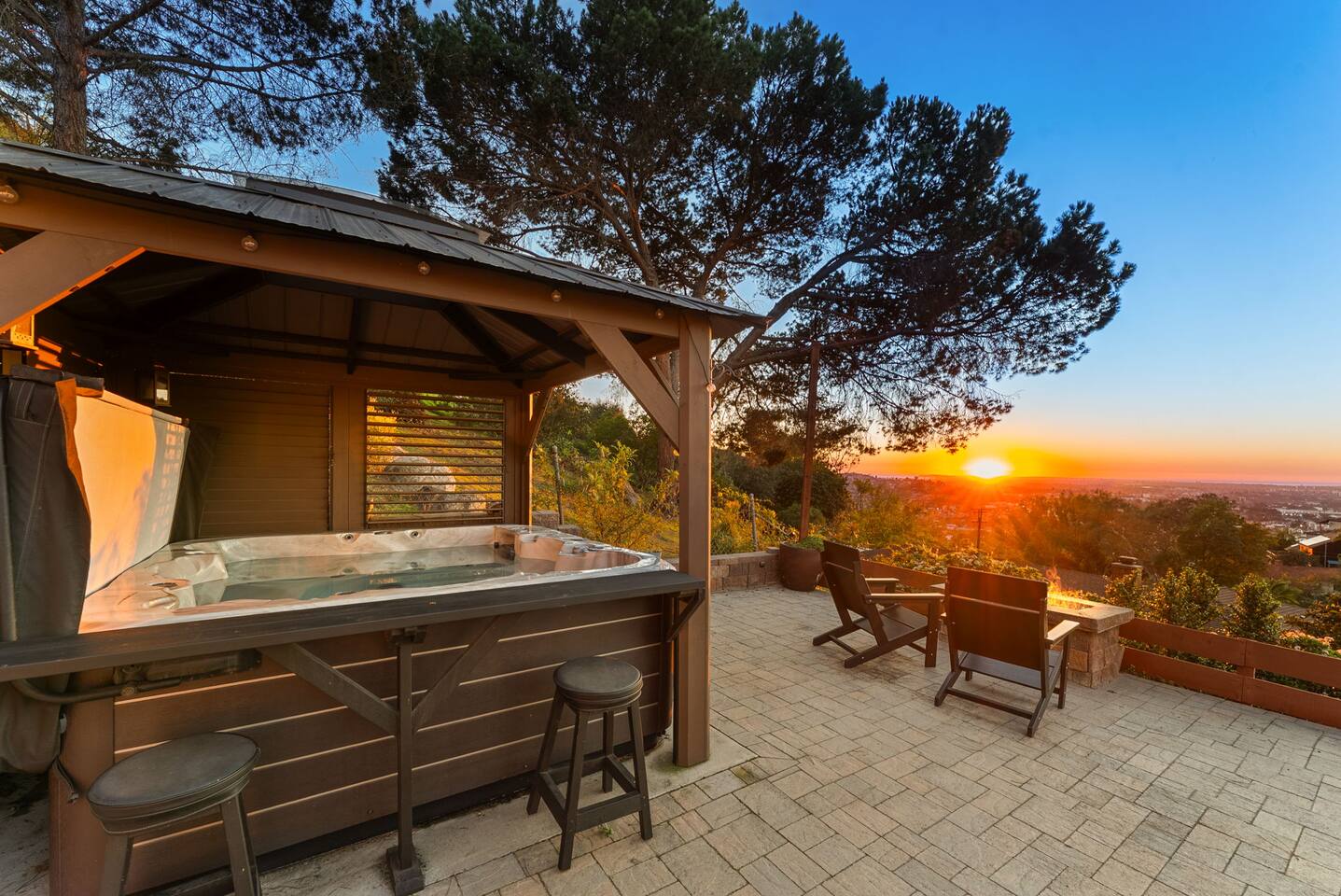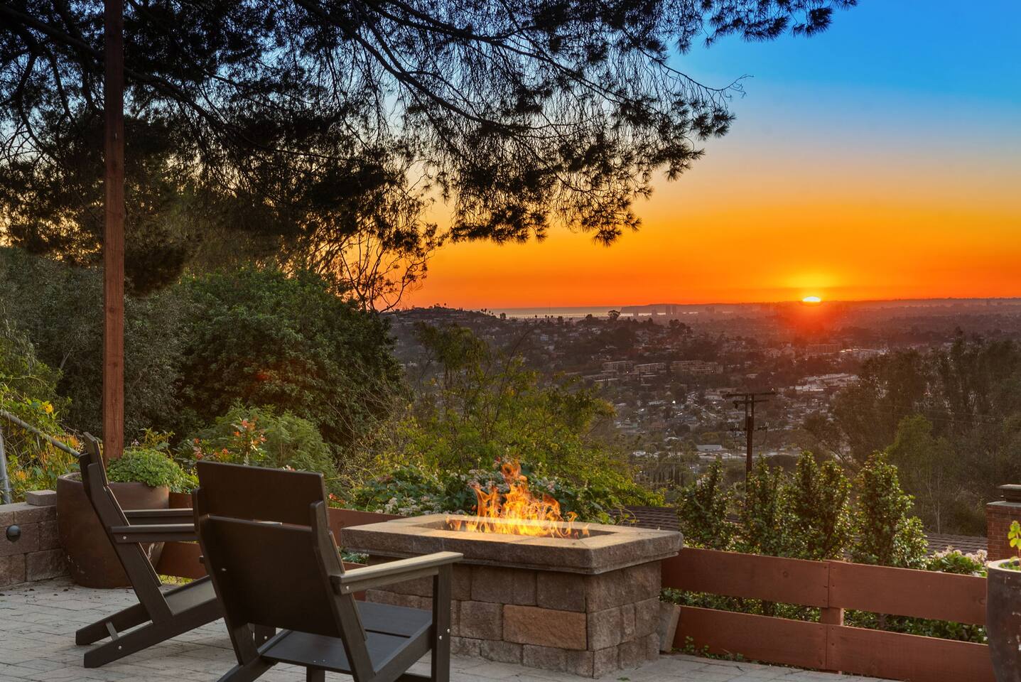 The backyard is all about relaxing and taking in the view. Sink into the hot tub once the sun goes down or during cooler winter nights, sway in the hammock, or challenge each other to a game of cornhole. End the night around the view fire pit, watching the lights of San Diego sparkle below.