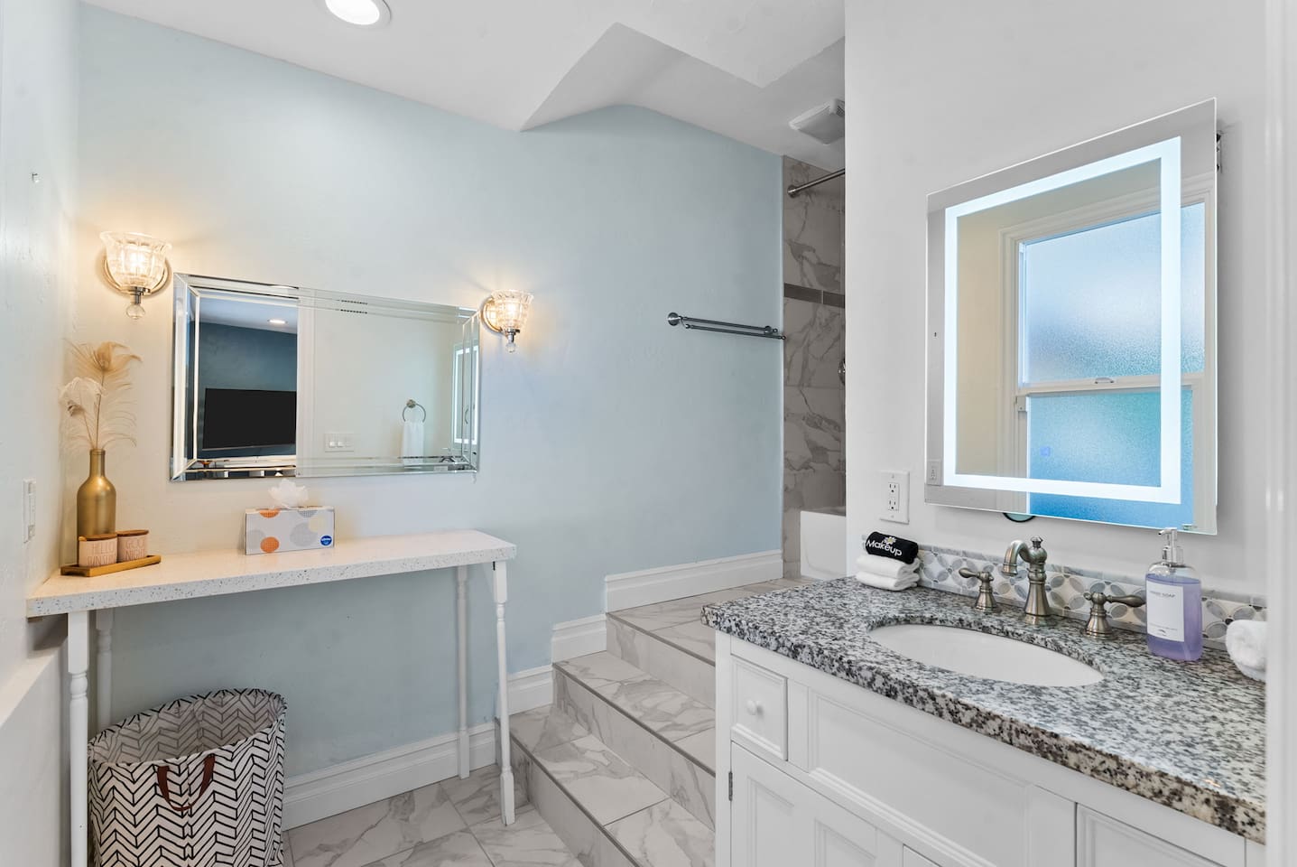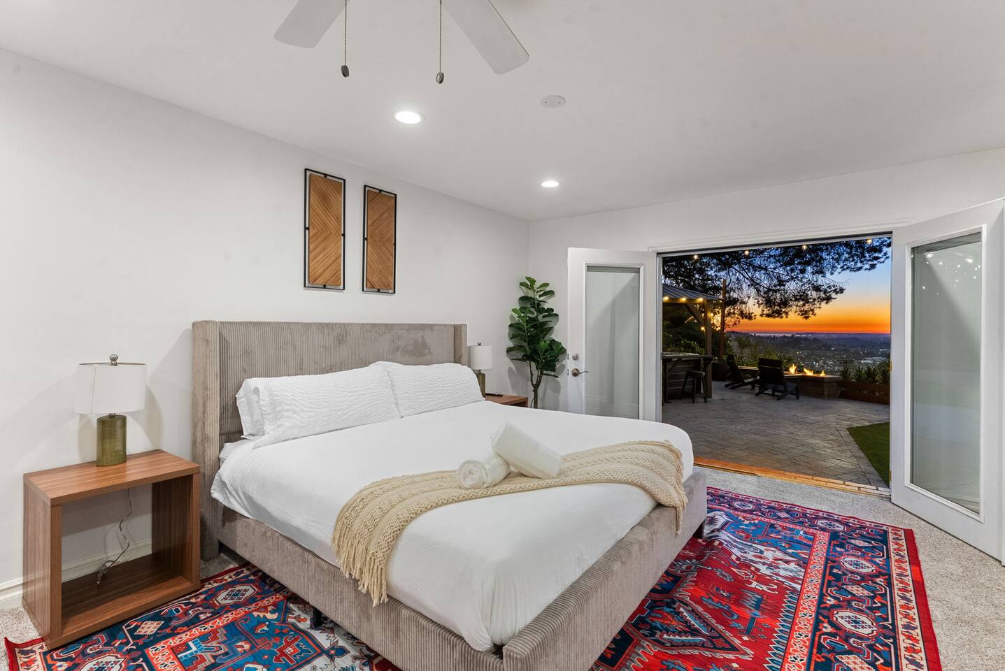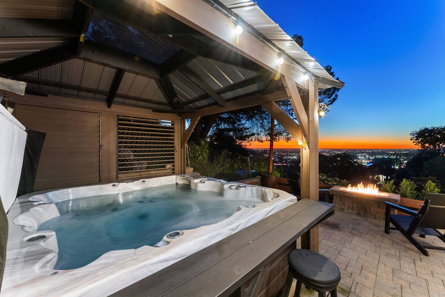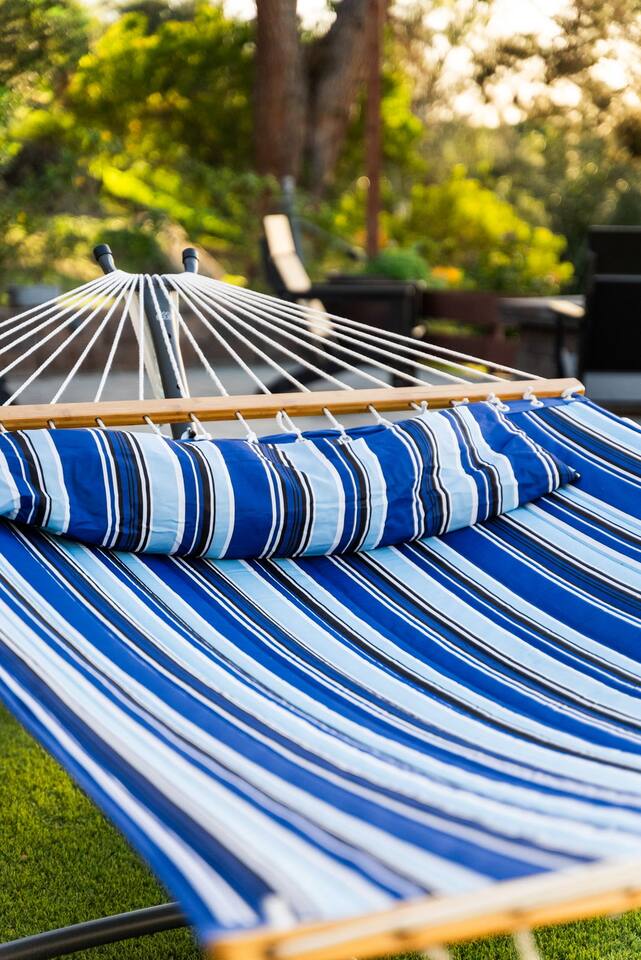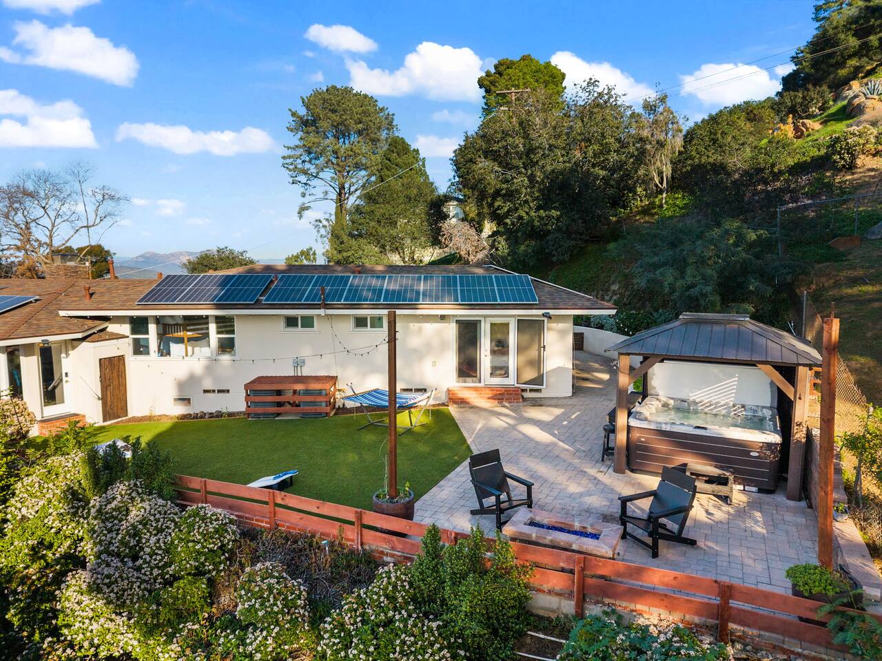 The backyard is all about relaxing and taking in the view. Sink into the hot tub once the sun goes down or during cooler winter nights, sway in the hammock, or challenge each other to a game of cornhole. End the night around the view fire pit, watching the lights of San Diego sparkle below.