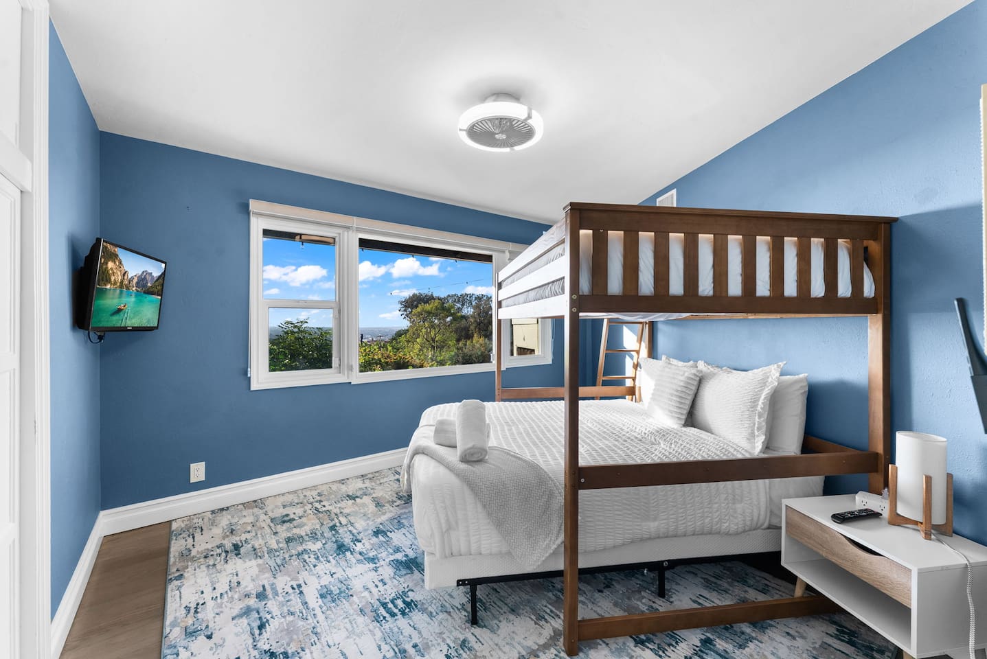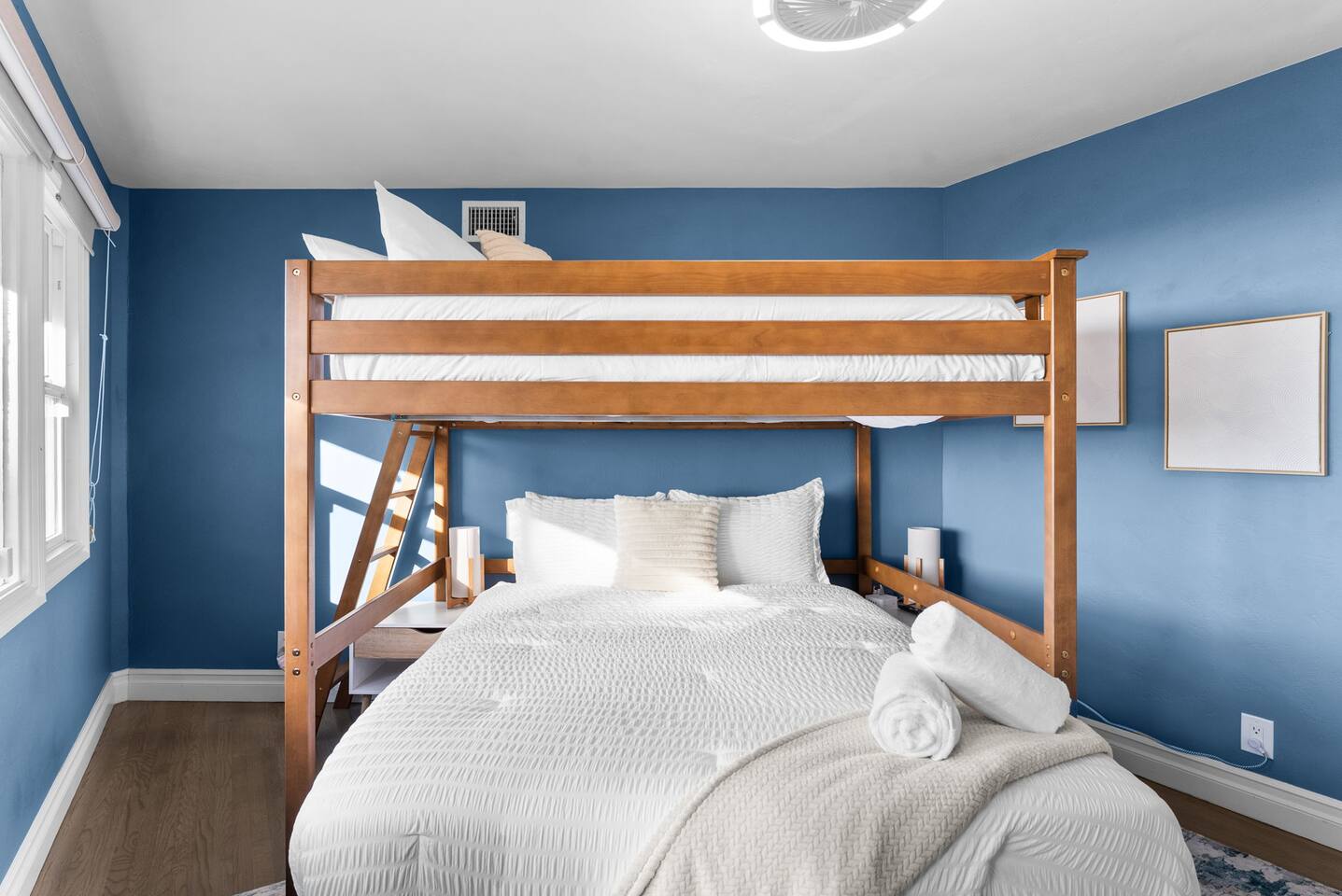 Bedroom 2: Queen bed with a full-size loft bed—perfect for kids