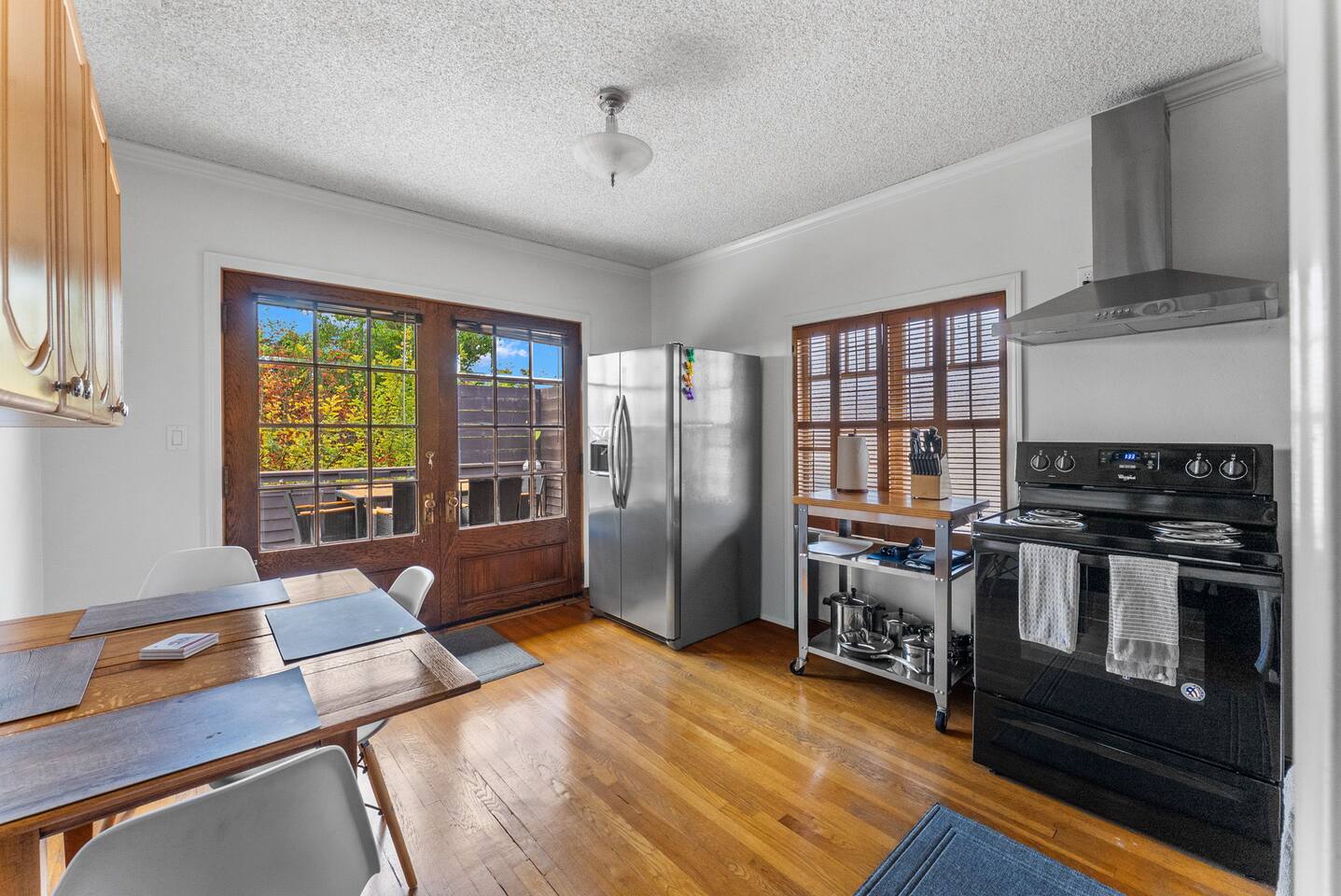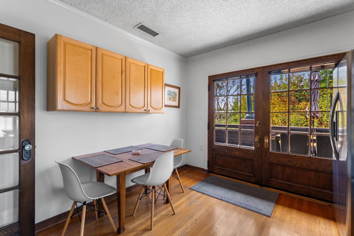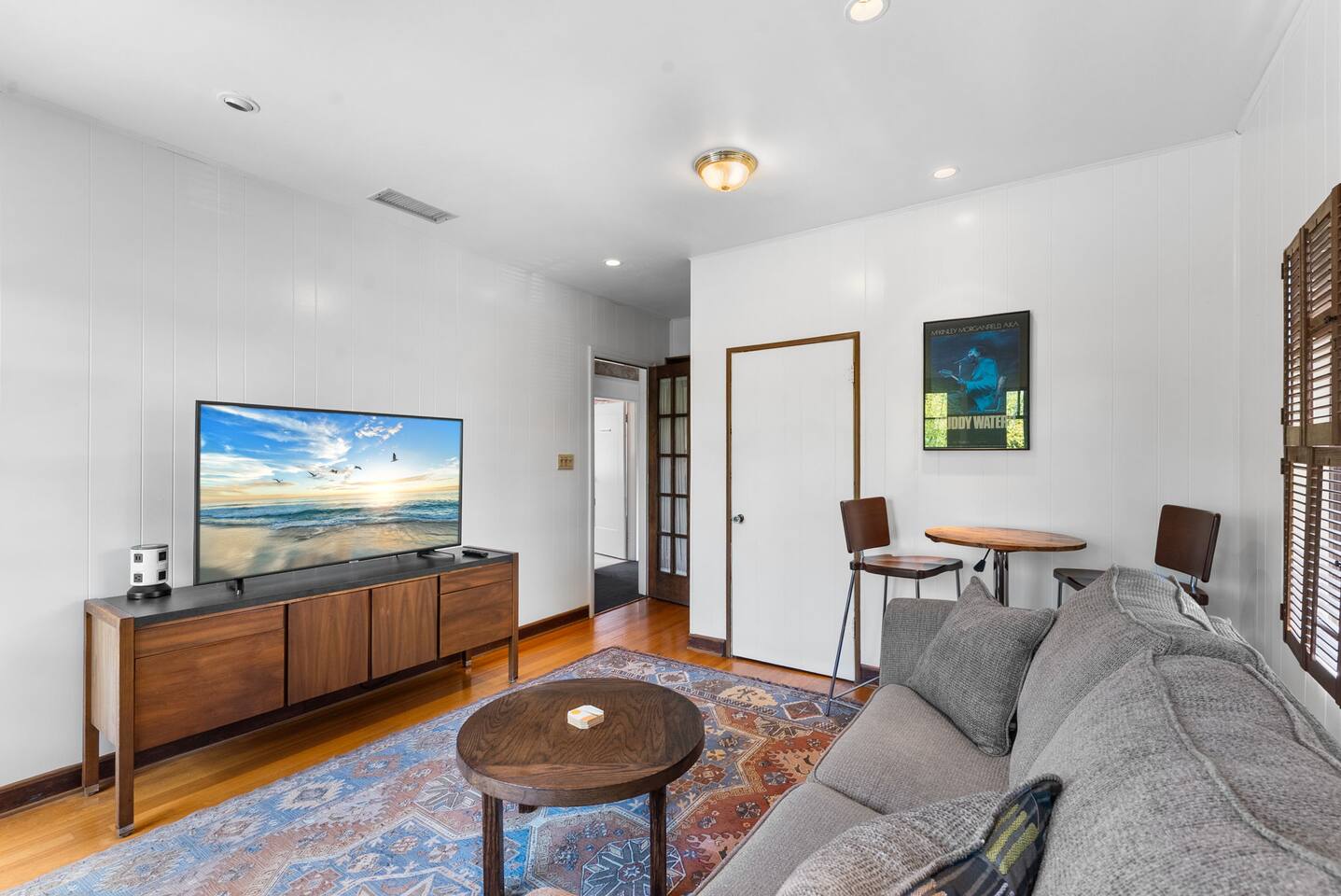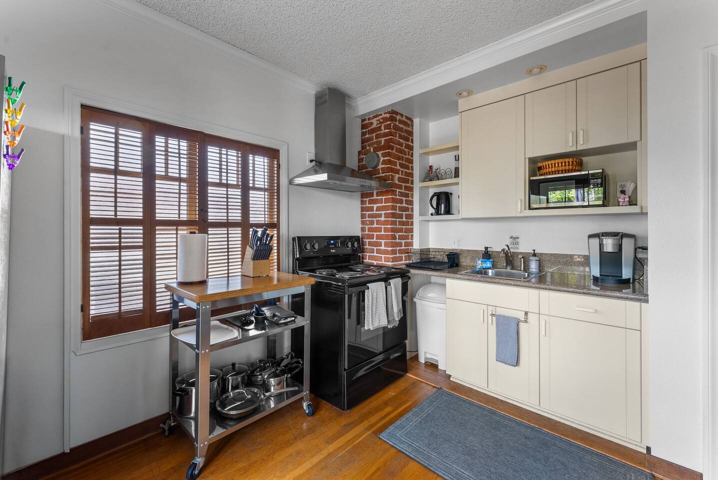 This space is perfect for guests who appreciate a stay that feels unique and storied, rather than cookie-cutter. Thoughtful updates blend seamlessly with these original features, including quality furniture and furnishings chosen for both comfort and style. A private patio offers a quiet spot to sip coffee or unwind in the evenings, while a full kitchen provides everything needed for home-cooked meals.