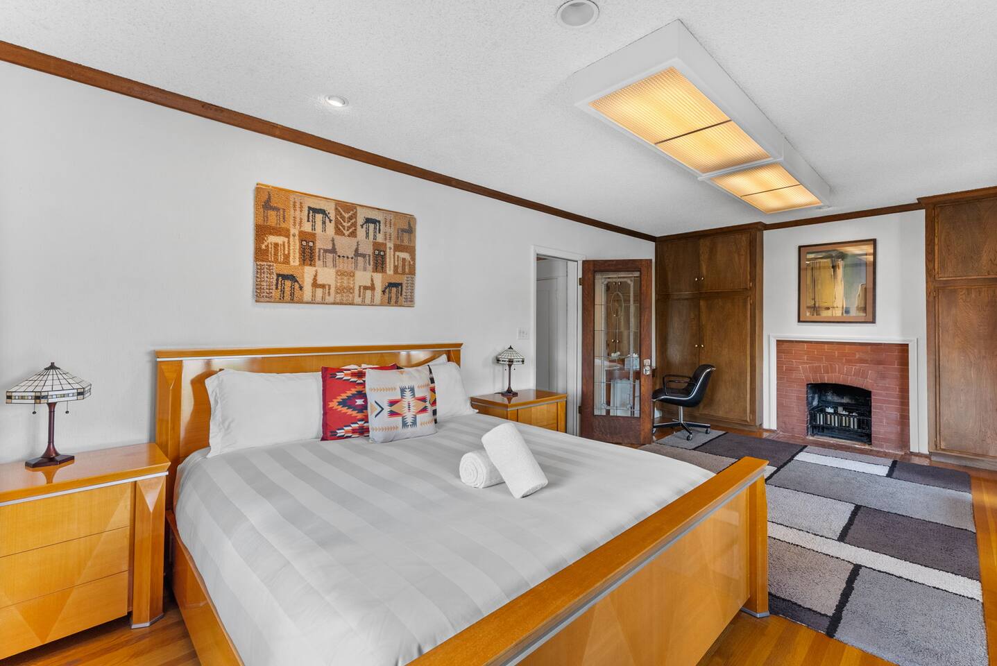 The entire second story of the home is reserved exclusively for Airbnb guests, offering a spacious and private retreat filled with character. Sunlight streams through the windows, illuminating the home’s many vintage details — from the original retro pink tile bathroom to the beautifully preserved wallpaper that adds a nostalgic touch of personality and charm.