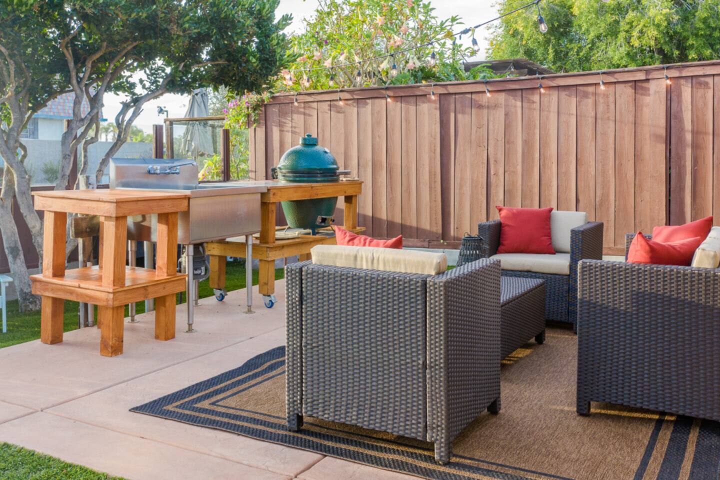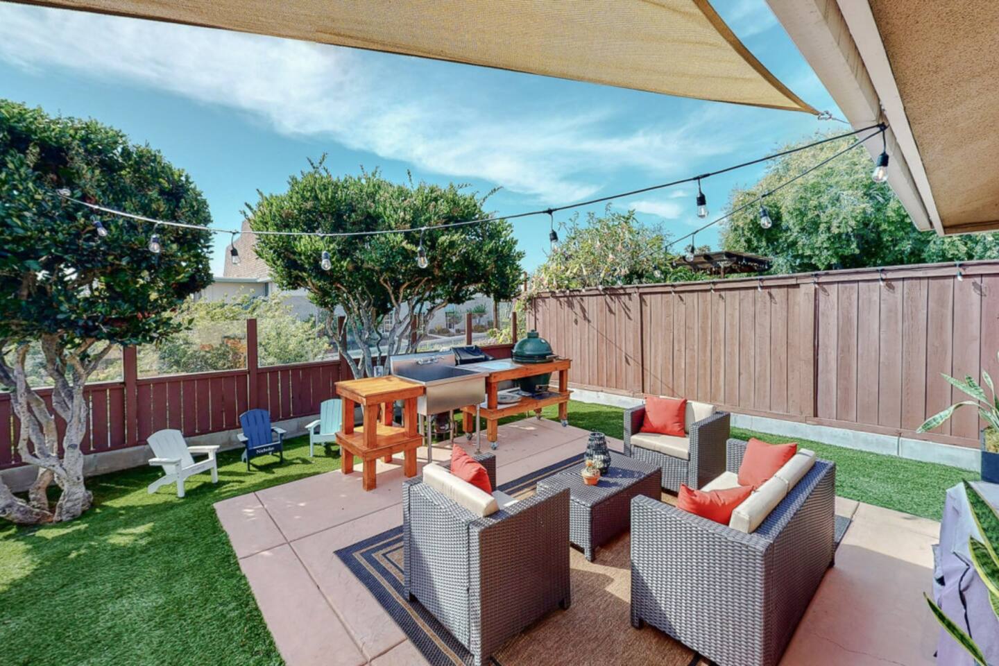 Welcome to your home away from home in San Diego! Step outside to the entertainer's backyard, where you'll find high-end patio furniture, a private gas grill, and a separate alfresco dining area under ambient string lights. About 10 minutes away, you'll find the beautiful beaches, offering endless sun, sand, and surf opportunities. #findyourcoastline
