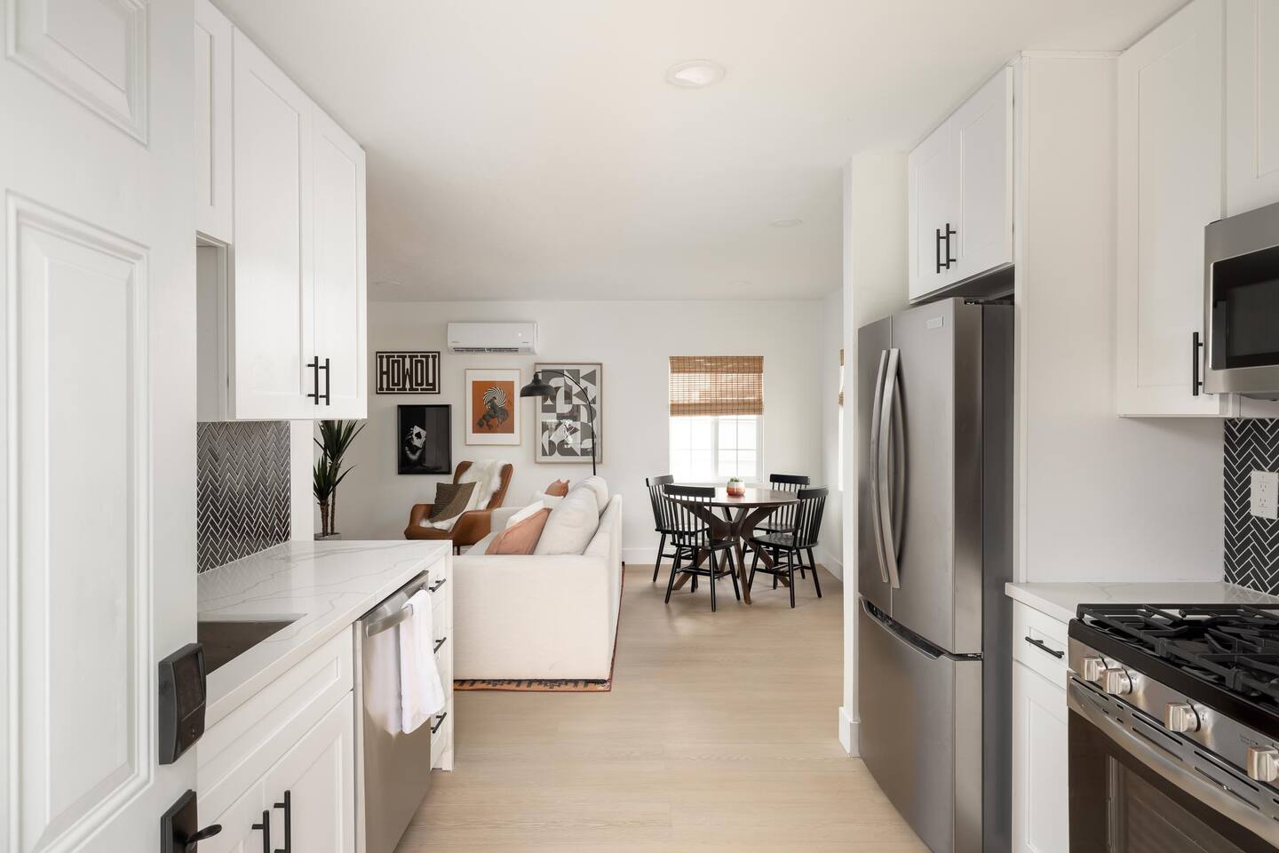 Designed by a local interior designer, the space blends warm textures, rich tones, and modern Western style—think rustic elegance meets city comfort. Inside, enjoy air conditioning, a fully stocked kitchen, and curated design touches that feel straight out of a boutique ranch stay.