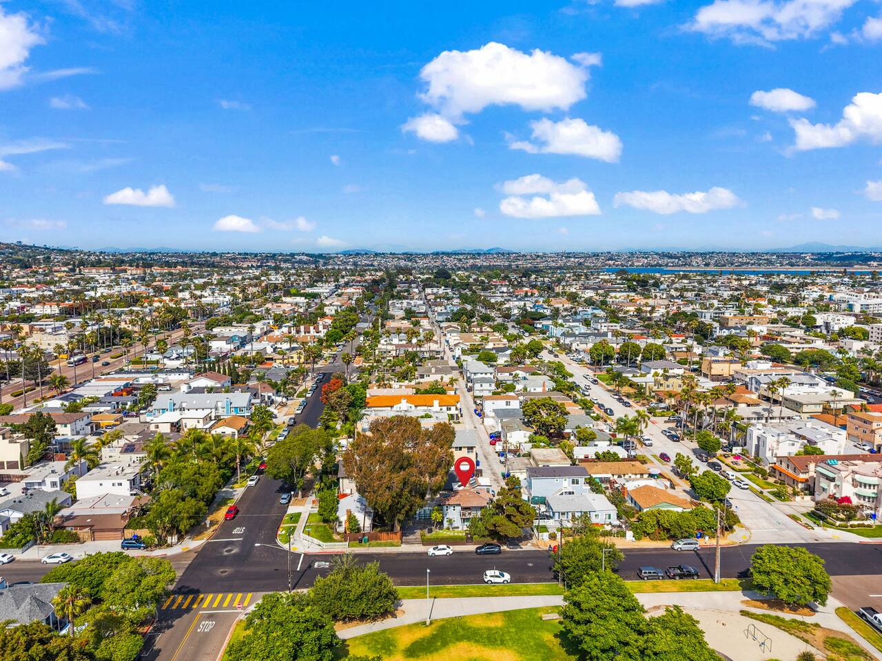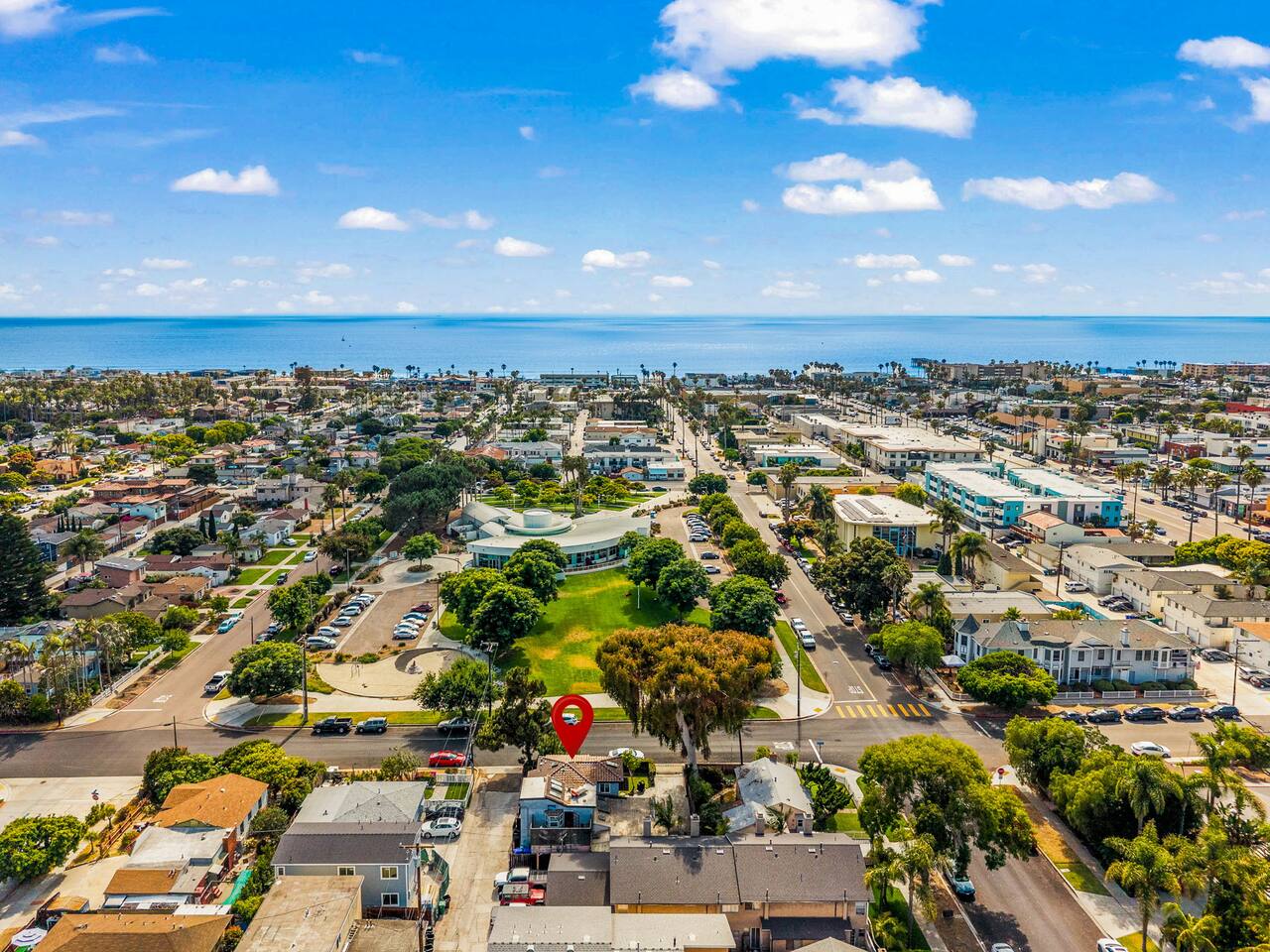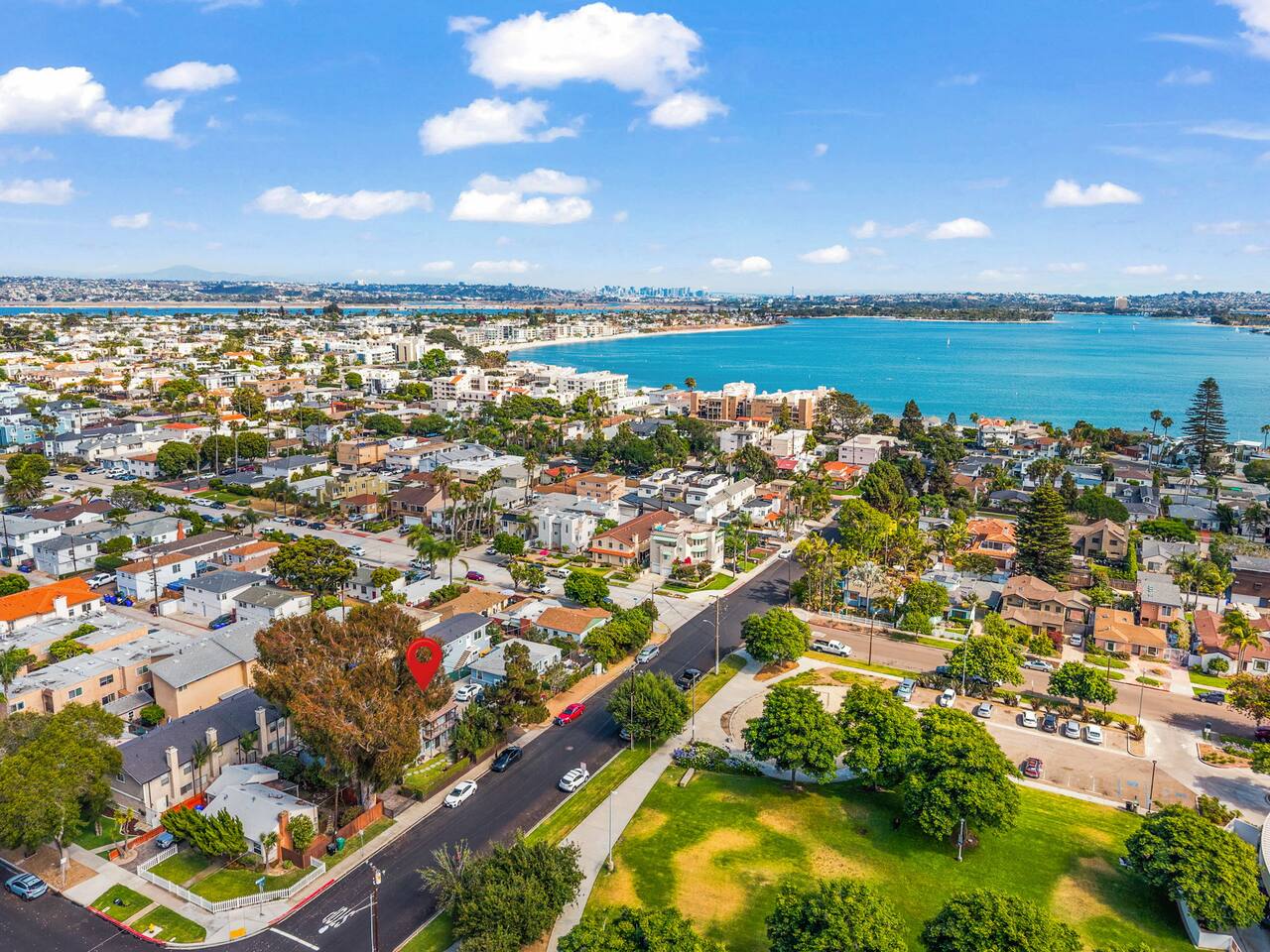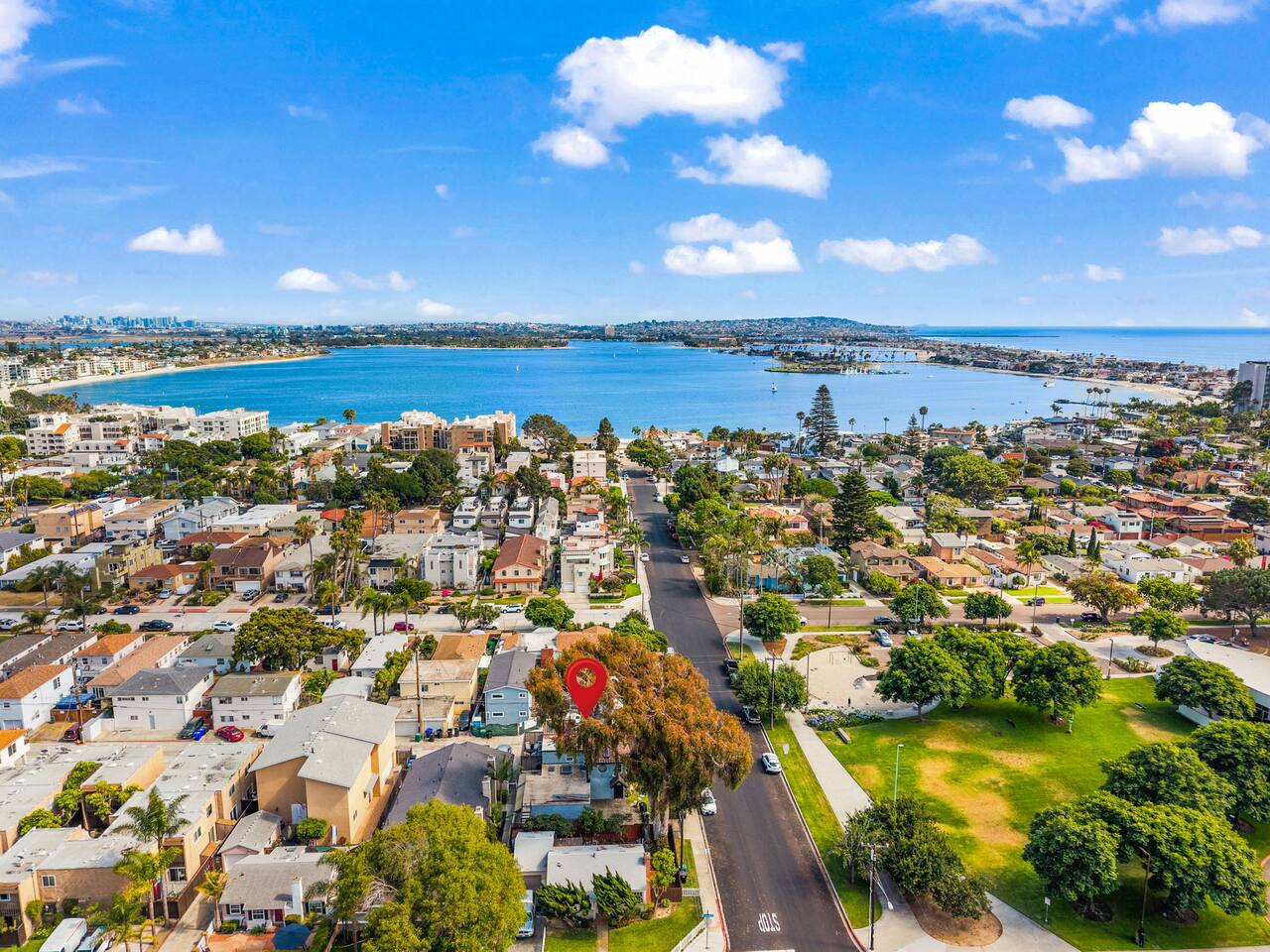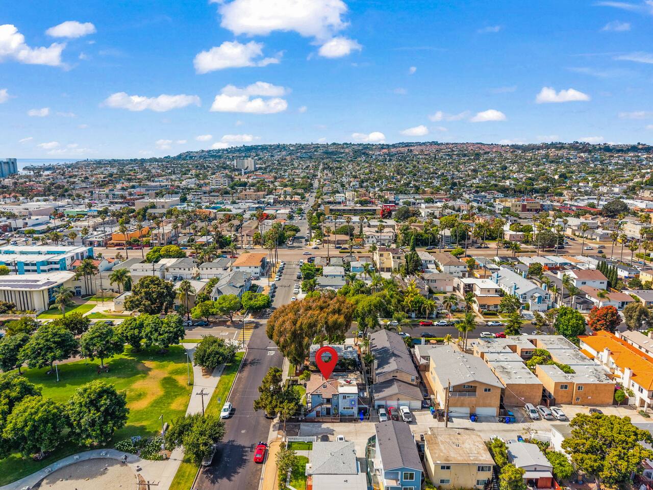 Step outside to the front balcony with a peek-a-boo view of the sparkling bay, or gather on the private patio around the fire pit for cozy evenings under the stars. Right across the street, you’ll find a lush park with plenty of grass, a playground with swings, and the local library — perfect for a picnic, kids’ playtime, or just soaking up the neighborhood’s relaxed energy.