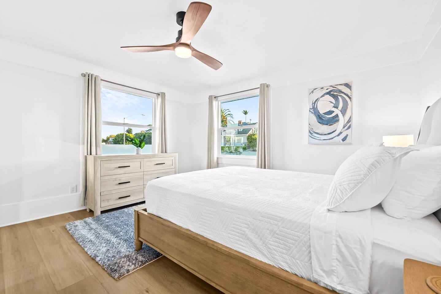The home features five spacious bedrooms and three full baths, offering ample privacy and flexibility for families, multigenerational travel, group getaways, or remote-work stays. A private lower-level suite with its own entrance provides a quiet, independent space perfect for grandparents, teens, or anyone seeking extra comfort. Outdoors, you’ll enjoy the peace of a fully fenced yard along with the rare coastal luxury of both garage and driveway parking — an invaluable convenience in this beachside community. And while the home feels tucked away in an upscale and serene pocket of OB, you’re still minutes from iconic surf breaks, the pier, vibrant restaurants, boutique shops, Seaworld, Sunset Cliffs, Liberty Station, and everything that makes San Diego unforgettable.